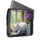 Capa Para Notebook Cat Napping on the Window Sill | Purple Flowers
