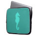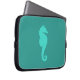A forma de um cavalo marinho em turquesa num fundo verde-marinho agradável.