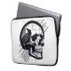 A imagem mostra um crânio humano estilizado visto no perfil. A forma do crânio é simplificada com linhas claras e formas geométricas sobrepostas, criando um efeito visual moderno.