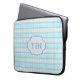 Bolsa de laptop monograma em padrão aqua e xadrez. Use a opção Personalizar para adicionar suas iniciais. Use a opção Personalizar se precisar reinserir o bloco de texto ou se quiser alterar a fonte, o tamanho da fonte ou a cor.