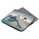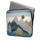 Paisagem moderna com cores e padrões únicos mostrando uma paisagem de montanha com uma linha do horizonte estriada.