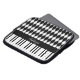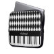 Design contemporâneo em preto e branco clássico, com uma fileira inferior de teclas de piano com diamantes em preto e branco acima. A design é dividida com uma banda de nome preto onde o nome ou a mensagem pode ser mudado para criar um dom de tema de música exclusivo
