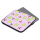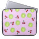 Cerejas e limões de padrões coloridos e lúcidos são apresentados em um fundo cor-de-rosa suave e pastel.