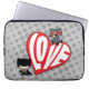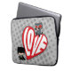 Confira Chibi Catwomen tocando Chibi Batman neste gráfico adorável, apresentando um coração vermelho gigante com a palavra "Amor".