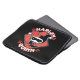 Confira Chibi Harley Quinn enquanto ela faz as divisões em frente a um pano de fundo de diamante de bolinhas vermelha com seu nome escrito em volta dela.