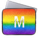 Carregar seus eletrônicos nesta manga de brilho e brilho LGBT para mostrar seu suporte. O design striped do arco-íris em falso brilho inclui tons de vermelho, laranja, amarelo, verde, azul e roxo com um monograma inicial em branco e o nome em um roteiro preto moderno para você personalizar. Mostre seu orgulho!