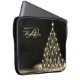 Christmas Monogram Golden Shiny Tree Winter Black laptop sleeve. Unique, beautiful, stylish design. Easy to be personalized. Font style, size and colors can be changed. Matching items are available.