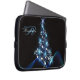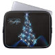 Christmas Party Blue Tree Shiny Black Elegant laptop sleeve. Unique, beautiful, stylish design. Easy to be personalized. Font style, size and colors can be changed. Matching items are available.
