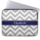 Capa Para Notebook Cinza Escura Lg Marinho Chevron Nome Azul Monogram