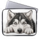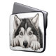 CAPA PARA NOTEBOOK CINZA FLUFFY E CÃO MALAMUTE BRANCO DE ALASKAN