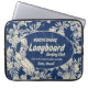 O clube surfando curto norte de Longboard, no espírito de tradições da ilha e aloha. Oahu, Havaí. Este crachá afligido do clube do surf é inspirado pelos clubes surfando dos anos sessenta. Monta sobre um impressão do pareau do hibiscus do vintage. Veja todas nossas caixas havaianas do roupa de mergulho para suas laptop, iPad 2 ou tabuletas.