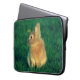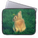 Coelho pequeno muito bonito, peludo/coelho na cor alaranjada que senta-se na grama verde do primavera. Cenário bonito da páscoa.