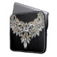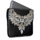Um colar de diamante com uma espiral de folhas de ouro e outros embelezamentos em um fundo de veludo preto.