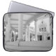 Uma colônia curva varre o primeiro plano da fotografia original em preto e branco levando a um pavilhão com um espaço de performance no fundo. A fileira dupla de colunas brancas corintianas suporta um telhado que se curva de direita para esquerda e de volta para direita novamente. Fotografado de ângulo baixo fora da estrutura, o teto e seus feixes de suporte são visíveis. No canto superior direito da armação, pendura um aglomerado escuro de cipós folhosas. As folhas moldam o arco decorativo do palco no fundo. No lado esquerdo do quadro, algumas árvores e arbustos podem ser vistos a uma distância além da arquitetura. O filme grão dá à foto um olhar vintage. Fotografia a preto e branco de 35 mm. Copyright © 1994 Claire E. Skinner. Todos os direitos reservados.