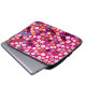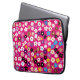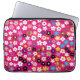 Colourful multicolour floral pattern laptop sleeve / tablet bag featuring, small white, pink, yellow, blue and purple flowers on a fuschia pink background.