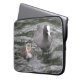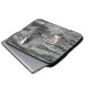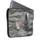 Esta bolsa de laptop espetacular mostra uma fotografia de um Coot e seu pintinho nadando em um rio de marés. A fêmea é uma cinza com mancha branca na cabeça e olhos vermelhos, enquanto o pequeno pintinho fluffy é uma cinza pálida com uma frente branca.