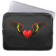Coração alada com atitude. Deixe-os saber que você leva o amor a sério com este tipo de namorados ao estilo da tatuagem — um coração vermelho resistente com asas pretas acentuadas em amarelo e laranja.