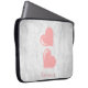Proteja seu laptop com uma Bolsa de laptop personalizada de coração cor-de-rosa. A design de bolsa de laptop apresenta um par de corações que repousam sobre uma vinha branca com folhas sobre um fundo de cinza moído com um lugar para personalizar com o seu nome. Itens adicionais disponíveis com este design também. Entre em contato comigo diretamente para obter assistência com a personalização.