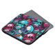 padrão de crânios coloridos e caóticos. Os crânios são, na sua maioria, azuis, com vários tons de espinhos e pingos cor-de-rosa e roxos. Alguns crânios têm dentes rachados e ossos quebrados, somando à natureza horrível e macabra da imagem. O fundo é preto, o que ajuda a destacar os crânios e fazer as cores pop.