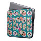 Imagens brilhantes de crânios de açúcar fazem um padrão colorido nesta engraçada e única manga de computador. Há dez diferentes imagens do crânio, todas individuais em várias cores, e colocadas sobre um fundo especial complementar.