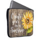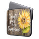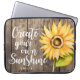 Caixa floral bonito do laptop que caracteriza o girassol da aguarela com citações inspiradas. As citações inspiradores dizem que "criar sua própria luz do sol." O fundo é textura de madeira. Design rústico e do país. Personalize este produto adicionando seu nome na parte inferior.