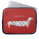 A bolsa de laptop personalizada para amantes do cão de salsicha ou amantes de qualquer coisa à moda e de um bocado subtil com alongado, cão de salsicha do teste padrão da xadrez no vermelho.