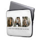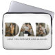 DAD laptop sleeve personalized with 3 of your favorite photos which are displayed in the shape of the word DAD with the words "Love you forever and always!" Perfect for your dad!