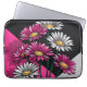 Modern Pink and White Daisies on a Pink, Black and Grey Abstract background electronics bag / waterproof laptop and tablet case.