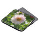 Dália branca na foto do jardim. Boa atitude para o trabalho. Pode ser usado como fundo para uma selfie. A foto foi tirada em 2015. O poster é adequado para o design do interior.