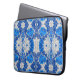 Bolsa de laptop numa cor damasco baseada numa floral William Morris, melhorada digitalmente e colorida - tons de azul e branco de safira médio a escuro, contra uma cinza de prata clara/fundo de cinza