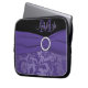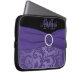 Esta bolsa de laptop floral preta e roxa personalizada do damasco com um broche da fita e do cristal do FALSO tem as caixas de texto para você personalizar com seu próprio nome, iniciais, nome da empresa, ou o outro texto. Se você precisa alguma ajuda que personaliza, envie por correio electrónico por favor niteowlstudio@gmail.com.