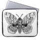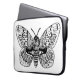 Ilustração desenhada à mão de uma mariposa em preto e branco.
