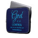 Na moda, bolsa de laptop cristã moderna inspiradora com a mensagem "DEUS ESTÁ NO CONTROLE E ELE TEM O ÚLTIMO DIZER" baseada nos provérbios 16:1. A tipografia azul ciano é escrita sobre um fundo azul-da-meia-noite profundo, que também tem um padrão sutil. O nome é personalizável para que você possa adicionar seu próprio nome. Isso daria um presente de excelente para os aniversários, Natal, Dia de as mães, Dia de os pais, etc., e o texto inspirador fornece um excelente lembrete ao longo do dia. Também disponível em outras cores e faz parte da DEUS TEM A ÚLTIMA Coleção SAY por Designs Bereanos.