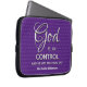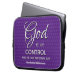 Na moda, bolsa de laptop cristã moderna inspiradora com a mensagem "DEUS ESTÁ NO CONTROLE E ELE TEM O ÚLTIMO DIZER" baseada nos provérbios 16:1. A tipografia das cinzas prateadas é escrita sobre um fundo roxo profundo, que também tem um padrão sutil. O nome é personalizável para que você possa adicionar seu próprio nome. Isso daria um presente de excelente para os aniversários, Natal, Dia de as mães, Dia de os pais, etc., e o texto inspirador fornece um excelente lembrete ao longo do dia. Também disponível em outras cores e faz parte da DEUS TEM A ÚLTIMA Coleção SAY por Designs Bereanos.