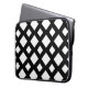 Um teste padrão corajoso, geométrico de grandes e diamantes brancos pequenos em um fundo preto. O preto forma uma estrutura que separe as formas do diamante.