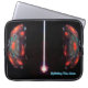 Representação fractal de um núcleo atômico dividido por uma partícula de alta energia. Leitura de texto, "Divisão do Atom" aparece em azul e branco brilhantes.