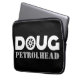 O nome Doug com a letra O como roda. Para um carro/bicicleta fanático, mecânico ou condutor. As cores podem ser alteradas.