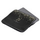 Design de tendência de brilho dourado com monograma dourado e nome de script branco em fundo preto.