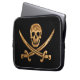 Dourado crânio colorido e espadas cruzadas. Pelo pirata discriminador. Por favor, note que esta é uma imagem, não ouro real ou metal.