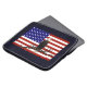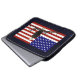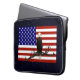 Uma águia careca varreu o céu de sua perca em um galho de árvore; sobreposto a uma bandeira dos Estados Unidos.