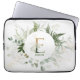 Projetado para a gata chic que é o nome começa com a letra E. Este elegante e sofisticado estojo de laptop feminino apresenta uma faixa verde e suculenta de aquarela com um alfabeto "E" para ser personalizado com seu nome embaixo.