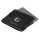 A bolsa de laptop preta elegante apresenta um monograma botânico dourado no centro.