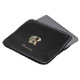 A bolsa de laptop preta elegante apresenta um monograma botânico dourado no centro.