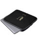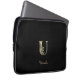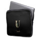 A bolsa de laptop preta elegante apresenta um monograma botânico dourado no centro.