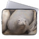 Uma fotografia de aproximação captura duas focas elefantes amontoadas numa praia arenosa. O primeiro plano apresenta um selo com uma casaco de cinza escura, seus grandes olhos escuros olhando diretamente para a câmera. Seu focinho está levemente enrugado e uma pequena quantidade de areia é visível em seu pelo. O selo está preso entre duas outras focas, uma com uma casaco de cinza e a outra com uma casaco de cinza mais escura.