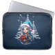 Elfo alegre que brilha com seu cabelo azul longo e fluente. O cabelo dela parece brilhar na luz suave, dando-lhe um brilho mágico. Na cabeça ela veste um bonitinho de Natal azul, decorado com uma pompom branca que combina perfeitamente com sua roupa. Seu sorriso quente irradia alegria e o calor, dando aos espectadores uma sensação de antecipação festiva. O fundo da design apresenta árvores de Natal brancas estilizadas, e o céu é pontilhado com estrelas brancas cintilantes que brilham como pequenos diamantes, criando uma atmosfera mágica.