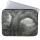 A detailed charcoal drawing by Amanda Diehl features a large, old tree growing bent over the edge of a cliff in the foreground. The tree's trunk and roots are prominently displayed, with intricate textures and patterns. Through a natural arch formed by the tree's branches, a landscape with hills, vegetation, and a cloudy sky is visible. Several birds are flying in the distance.
