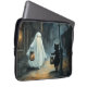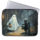Capa Para Notebook Encontro de Ghost e Gato do Halloween
