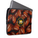 Esta bolsa de laptop neoprena personalizada do futebol apresenta um padrão de bolas de futebol aparentemente intermináveis e organizadas aleatoriamente em fundo negro - personalizar com nome e monograma num pendante de círculo preto e dourado - personalizar as cores do pendante, monograma e/ou nome do círculo para combinar com as cores de uma seleção de futebol favorita - por katz_d_zynes