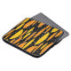Capa Para Notebook Estilo atômico, padrão geométrico laranja preto.